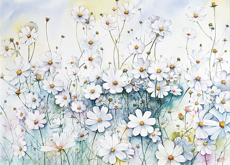그날 아침의 인상 페이지 정보 작성자꿈꾸는달 조회 329회 작성일 2022-12-12 17:41:52 댓글 0 list_alt목록 본문 그날 아침의 인상-10호Watercolor on Paper-어느날 아침 걷던 길가에서 흔들리는 꽃잎들이 나에게 건네는 인사처럼 들려온다.여리지만 공간을 향해 뻗는 꽃들의 군무처럼정체되지 않고 매순간 변화하는 생명을 느끼게 합니다. - arrow_back arrow_forward list_alt 댓글 0 등록된 댓글이 없습니다.