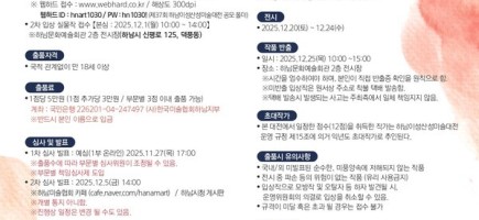 제29회 통일미술대전 <한국 대표 작가 초대전>-접수기간 : 2025년 10월 10일(금) ~ 2025년 11월 12일(수)문의 : 02-735-4806-
