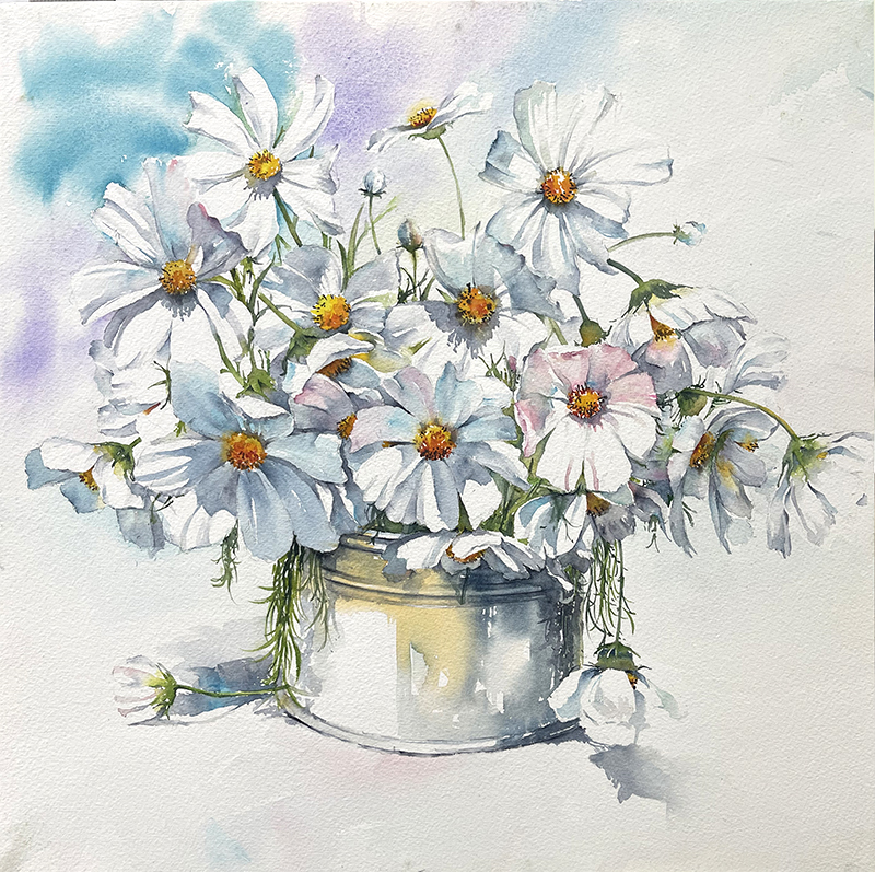 빛의 서정 vol.2 페이지 정보 작성자꿈꾸는달 조회 42회 작성일 2025-10-25 16:43:47 댓글 0 list_alt목록 본문 빛의 서정 vol.2-40cm × 40cmWatercolor on paper- 차갑고 단단한 질감의 화병이 부드러운 꽃잎과 극적인 대비를 이루며 시선을 잡아냅니다. 은빛 화병의 표면에 비치는 주변의 색과 빛의 반사는 정물화에 생동감과 현대적인 감각을 부여하고복잡한 세상 속에서 잠시 잊고 지냈던 순수함과 평화의 감정을 되찾게 해주는 작은 창이 되었기를~ arrow_back arrow_forward list_alt 댓글 0 등록된 댓글이 없습니다.